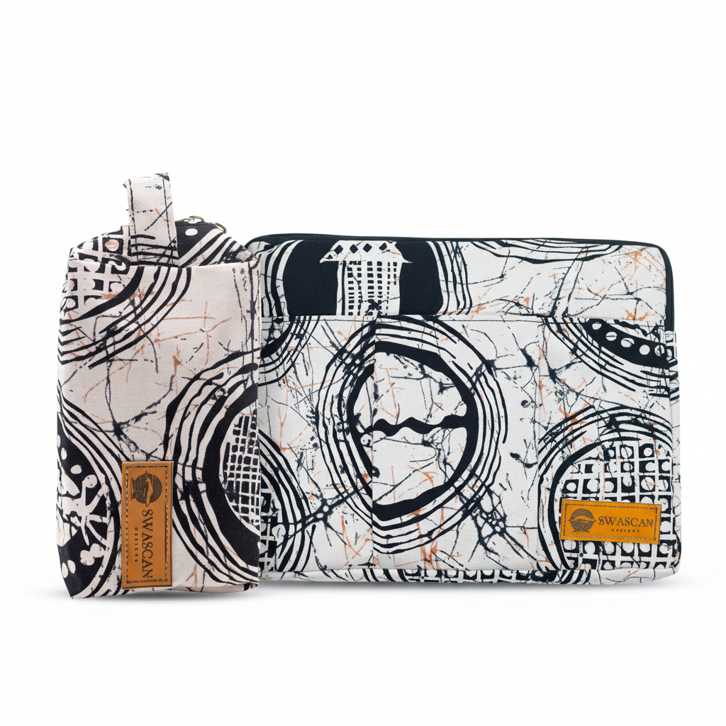 Binti Ankara Laptop Bag Set - Batik Print Work Bag & Washbag